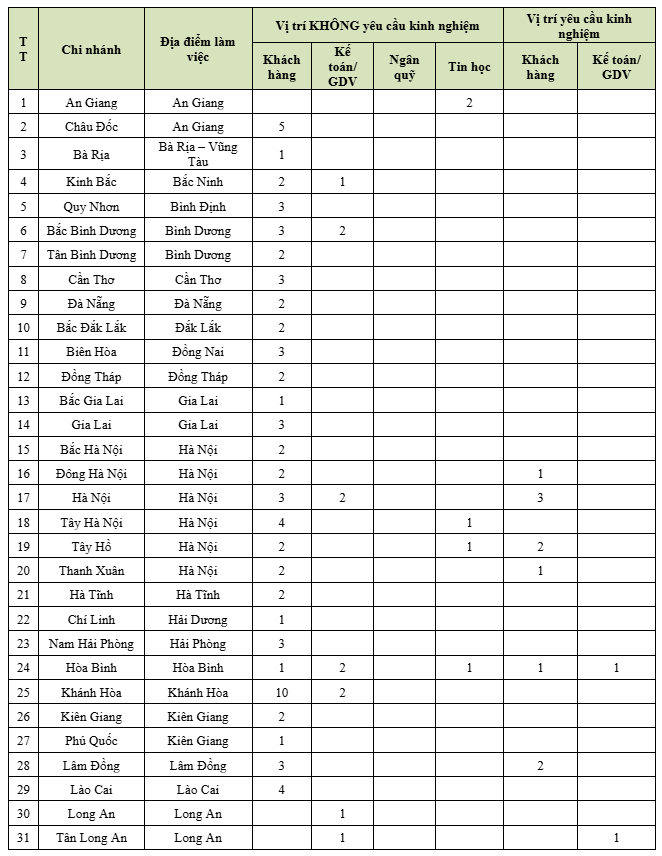 Theo đó, Vietcombank thông báo tuyển dụng đợt 5 năm 2025, chỉ tiêu cụ thể như sau:
